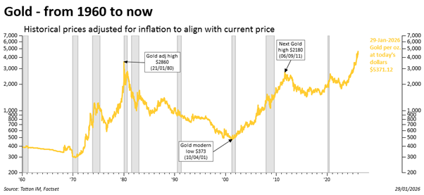 Talking of geopolitical risk signals, gold prices rocketed to an astounding $5,600 per ounce, before settling back down to around $5,050 this afternoon. The reasons for gold’s ascent are, by now, well-rehearsed: global de-dollarisation, private Chinese demand, and self-enforcing price momentum, due to speculative investors.